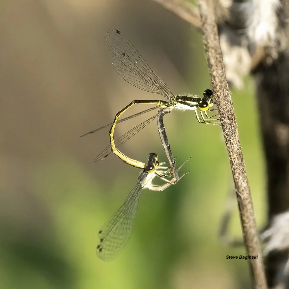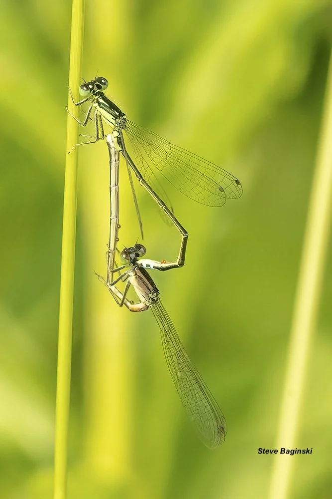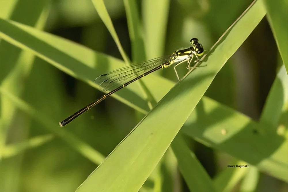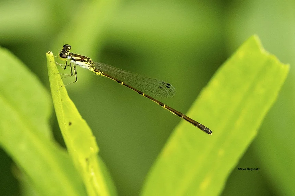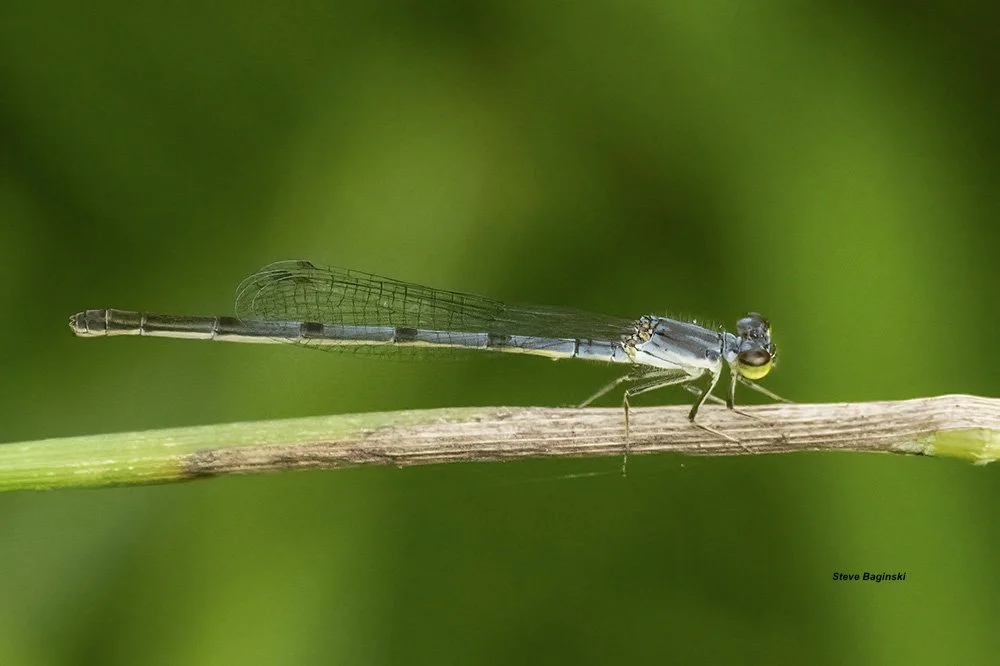 Steve Baginski comenzó a dedicarse a la fotografía en 1993. A medida que crecía su interés por la fotografía, también lo hacía su curiosidad por la naturaleza que fotografiaba. En 2018, cuando su esposa, Gail Chastain, comenzó a trabajar como voluntaria en un proyecto de monitoreo de odonatos en el Morton Arboretum de Lisle, Illinois, él comenzó a acompañarla. A medida que su interés por los odonatos también crecía, se unió oficialmente al equipo de libélulas del Morton Arboretum en 2020. Steve se interesó especialmente por las caballitos del diablo, mientras recopilaba datos. Desde que se jubiló, dedica todo el tiempo que no dedica al monitoreo «oficial» a buscar más libélulas y caballitos del diablo.